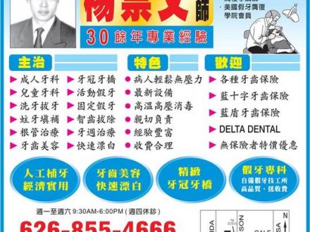 杨崇文牙医师 – Yang, Chung Wen, D.D.S., M.S.-626-855-4667