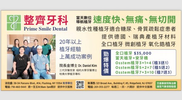 作为社区最大的牙科集团,整齐牙科在纽约、新泽西、康州都设有门诊,拥有12位包括牙医、整容科认证医师,及麻醉师在内的各类专业人才,提供360°全方位口腔服务。院长Dr. Daniel D Kim表示:“患者的好评是整齐牙科不断努力的目标。”