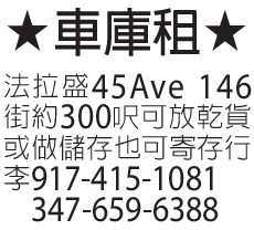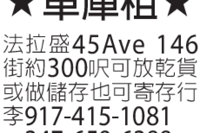法拉盛45Ave 146街約300呎可放幹貨或做儲存也可寄存行李