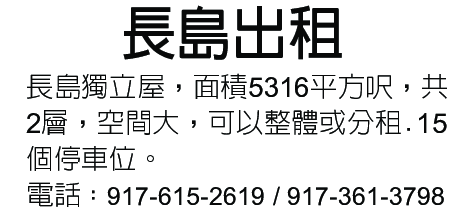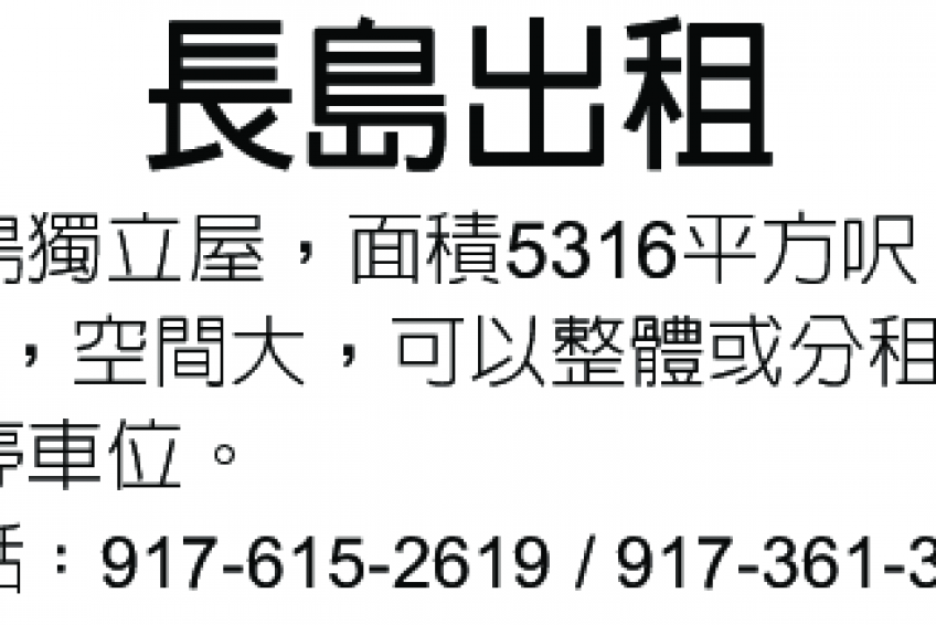 長島獨立屋,面積5316平方英呎共2層,空間大,可以整體或分租.15個停車位。