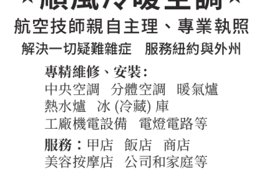服务:甲店、饭店、商店、美容按摩店、公司和家庭等(纽约与外州)