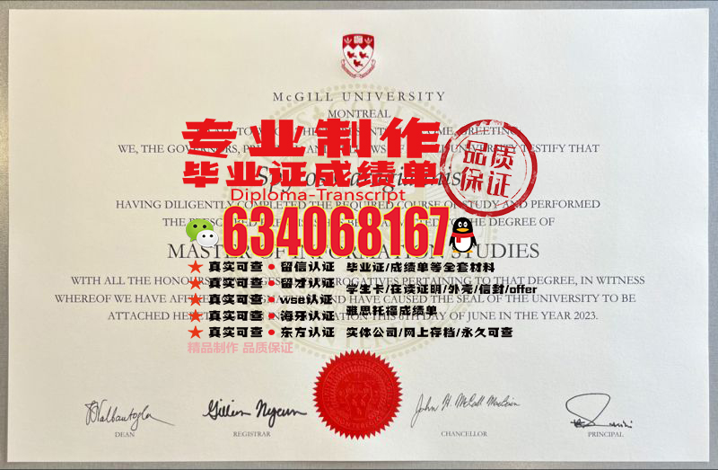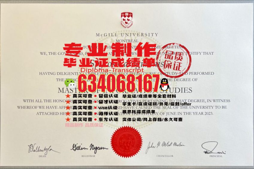 「加拿大国外假毕业证」QQ微信634068167制作麦吉尔大学McGill University毕业证成绩单加拿大学历文凭学生卡offer#ID卡留信留才认证offer#在读证明
