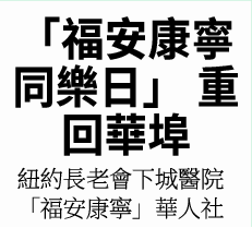 ● 參與「福安康寧同樂日」的社區組織與機構:壽星花園療養院親情健保阿茲海默症關愛服務亞美醫師協會美洲中華醫學會美國華裔註冊護士協會王嘉廉社區醫療中心安保健康保險帝國藍十字藍盾健保公司第一保健聯合健康保險富康醫療