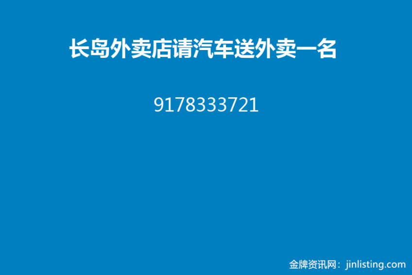 【招工】长岛外卖店请汽车送外卖一名。9178333721