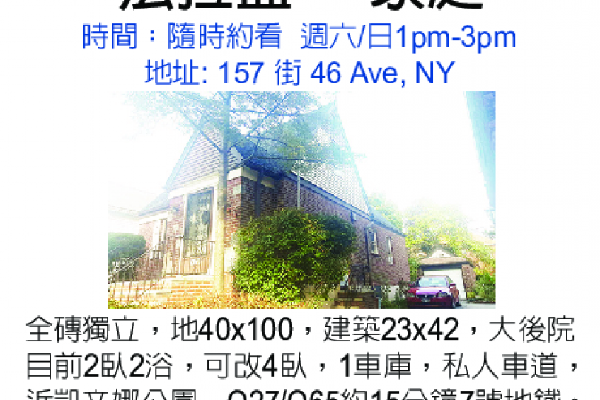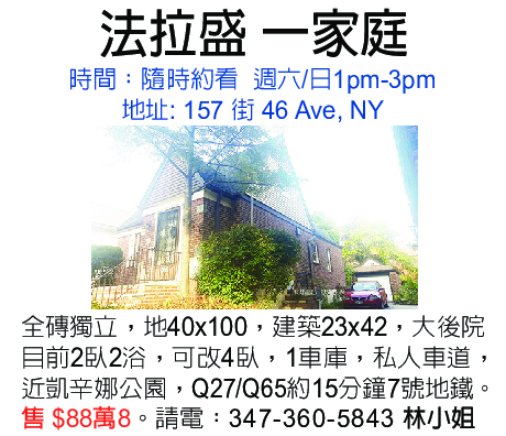 目前2臥2浴 可改4臥 1車庫, 私人車道 ,靠近凱西娜公園 ,Q27 Q65約15分鐘7號地鐵