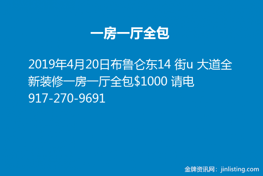 布鲁仑东14 街u 大道全新装修一房一厅全包$1000 请电917-270-9691