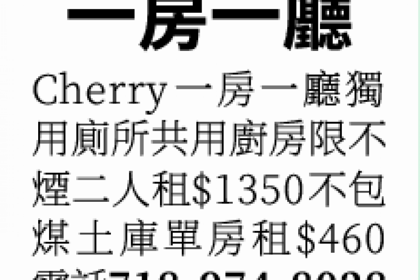 煙二人租$1350不包