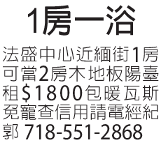 法盛中心近緬街 1房可當2房 木地板 陽臺 租$1800 包暖瓦斯 免寵 查信用
