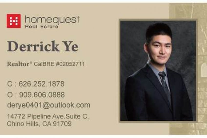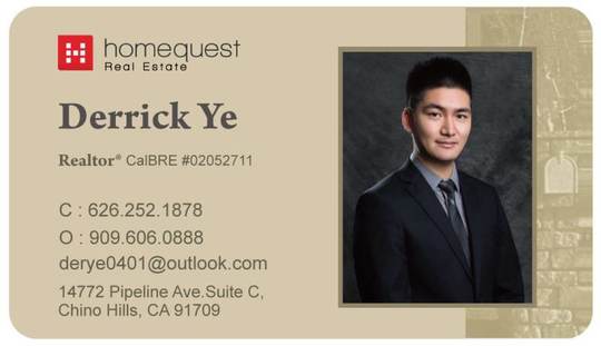 洛杉矶房产经纪人Derrick Ye为全职地产经纪,为您提供专业诚信及亲切的服务精神,专精于海外华人赴美购房相关服务,学区自住屋,投资房,短售屋,法拍屋,服务范围:钻石吧,核桃市,奇诺岗,尔湾,Brea,Yorba Linda,Rancho Cucamonga等优质学区和高级住宅区无论您是自住还是投资,买房和卖房,我都可以给您提供专业的服务.