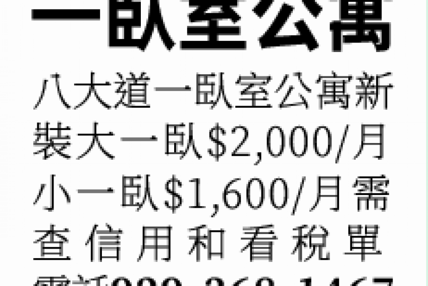 小一臥$1,600/月需