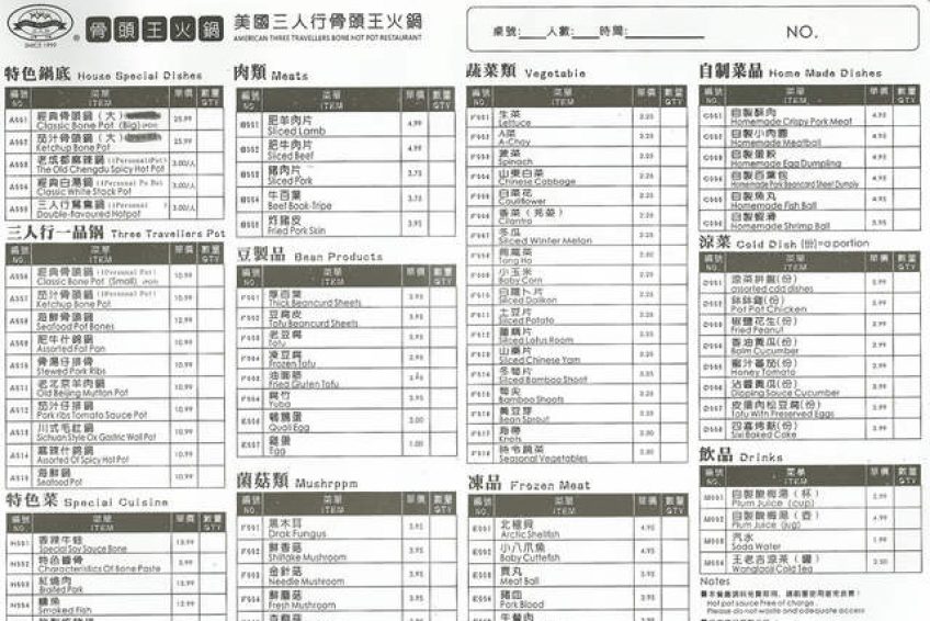 三人行骨頭王火鍋是最近在丁胖子廣場附近新開的店,一查才知道原來在上海是一家很出名的連鎖店。又是一家打入加州的華人連鎖!加油哦~~他們家最著名的就是他們的骨頭湯了,鍋底是純正濃郁的骨頭湯,再加上各種新鮮的蔬菜,絕對是喜歡吃蔬菜的孩子們的福利啊!喜歡吃肉的孩子們也可以在裡面涮肉蘸醬~小編每次去吃,都覺得自己變的很健康~哈哈~他們的價格也超級划算,兩個人$20就可以吃的超撐!一個鍋裡一般都有一大塊帶肉骨頭丶蛋餃丶百葉包丶蟹肉棒丶香酥豬肉丶粉絲丶生菜丶筍丶豆芽等,料多到都快要漫出來了~對了,他們家的羊肉鍋也非常的好吃,“肉食動物們”一定要試一試!