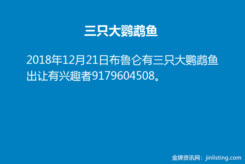 三只大鹦鹉鱼 布鲁仑有三只大鹦鹉鱼出让有兴趣者9179604508。