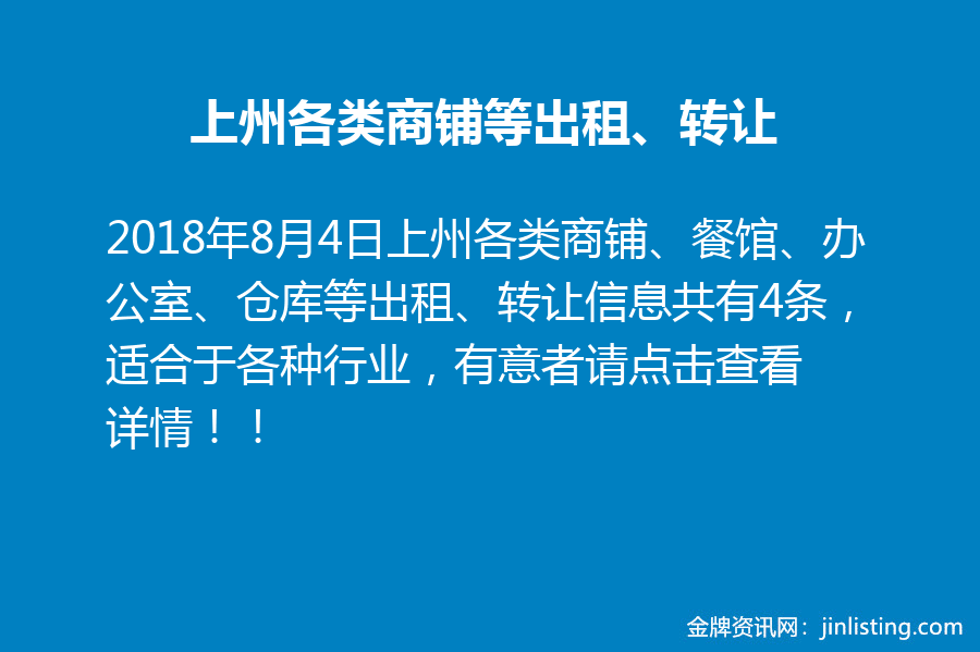 上州各类商铺、餐馆、办公室、仓库等出租、转让
