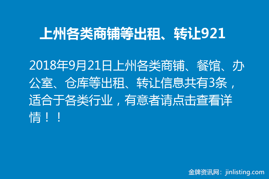 上州各类商铺、餐馆、办公室、仓库等出租、转让