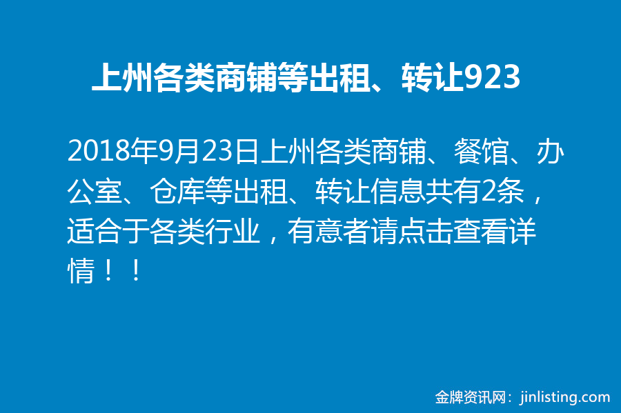 上州各类商铺、餐馆、办公室、仓库等出租、转让