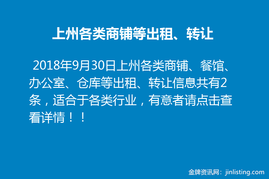 上州各类商铺、餐馆、办公室、仓库等出租、转让