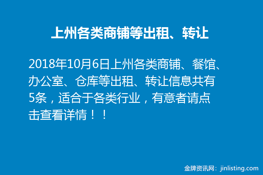 上州各类商铺、餐馆、办公室、仓库等出租、转让