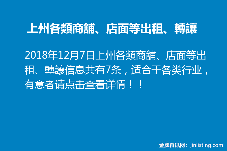 上州各類商舖、店面等出租、轉讓