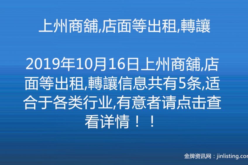上州商舖,店面等出租,轉讓