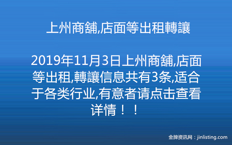上州商舖,店面等出租轉讓