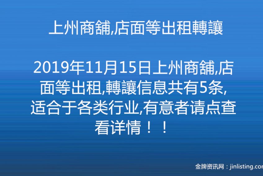 上州商舖,店面等出租轉讓