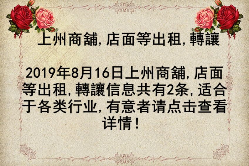 上州商舖,店面等出租,轉讓