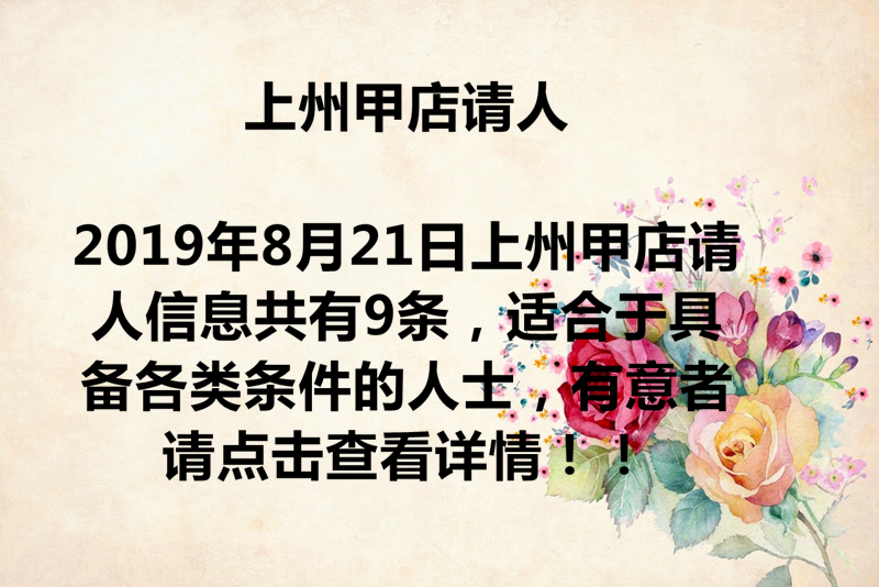 “上州甲店优薪请小工 中工 会拔毛 SNS优先 工作顺心 提成全面 大脚多 另招周末小工 中工 临时工 电话 6462665871”