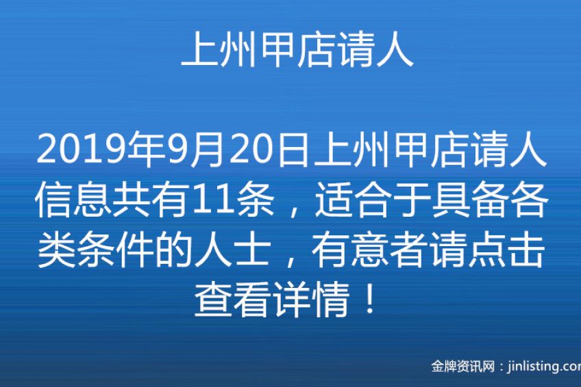 “上州甲店优薪请小工 会拔毛 能开车 SNS优先 工作顺心 提成全面 大脚多 另招周末小工 临时工 电话 6462665871”