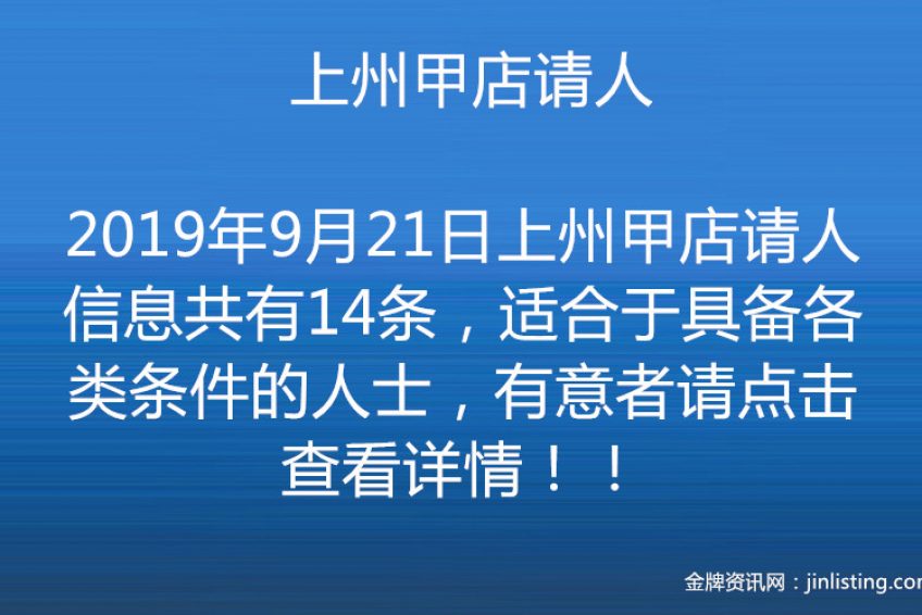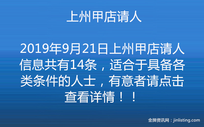 “上州甲店优薪请小工 会拔毛 能开车 SNS优先 工作顺心 提成全面 大脚多另招周末小工 临时工 电话 6462665871”