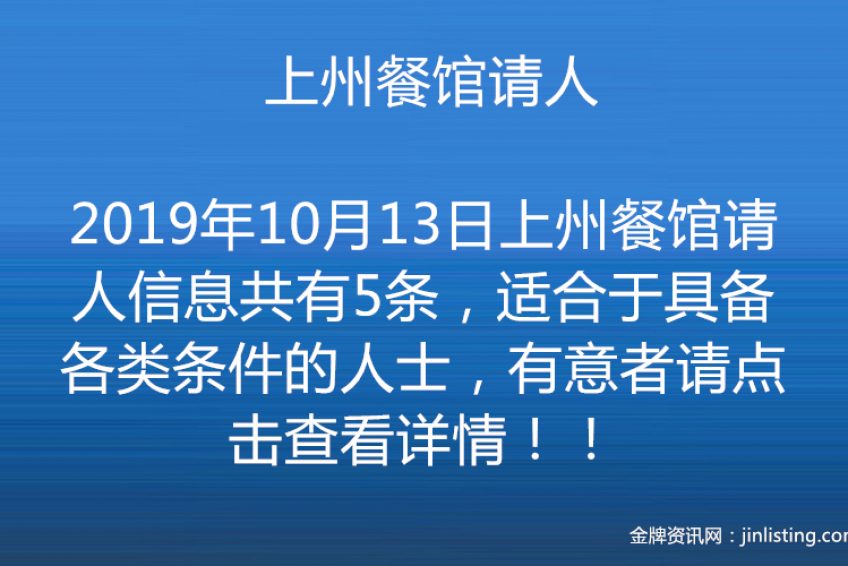 全曰歺请企台 “上州,5天。请经验企台,busboy 各一名 电话3479778320”