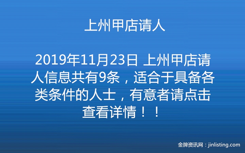 上州甲店请人