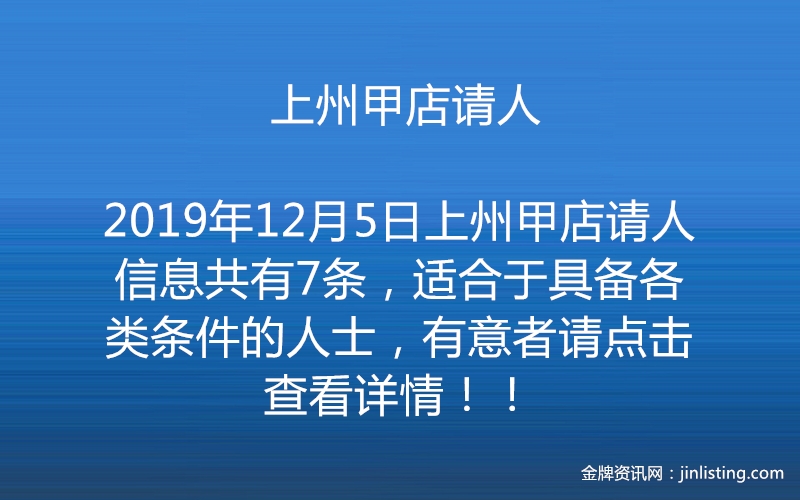 上州甲店请人