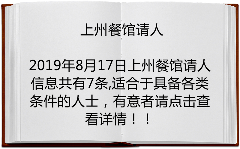 “上州亚洲餐诚请企台.法拉盛接送. 电话 718-864-2007”