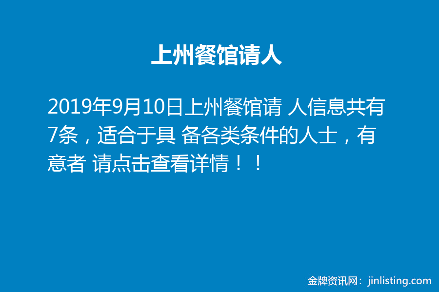 “纽约上州中日餐请收银和企台 法拉盛接送,一周5或6天 找小华646-427.6646 或找老板914-277.8900 请上午11:30到晚上8:30打电话”