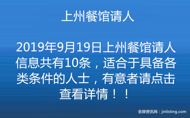 上州亚洲餐堂吃店请前台 请经验前台,需熟手,接电话,带位,电脑单,会酒水最好。需报税,有意请电6462096905.一个星期四天班,周一到周四。税后工资520。小费自拿。