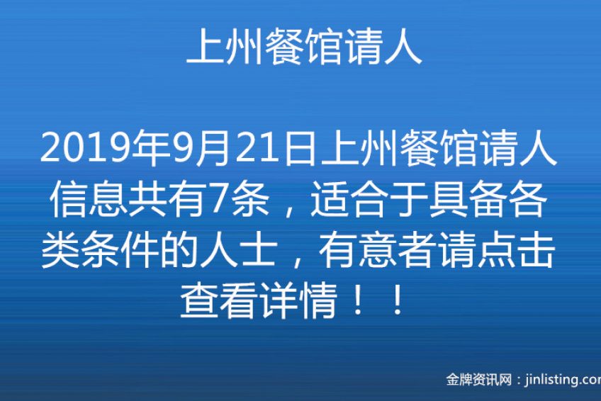 上州中日餐,诚请企台一名,工资电聊,上五天,法拉盛接送,有意者请拨3472597604