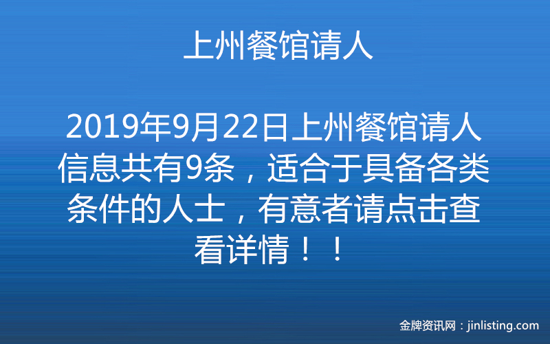 Albany餐厅诚聘男企台 纽约上州Albany江浙餐厅诚聘男性企台,要求有身份会英文。包食宿交通,有固定工资和底薪+小费两种薪资模式可以自由选择,希望可以长期合作,不招短期工,有意者请电联818-428-0815孙先生。