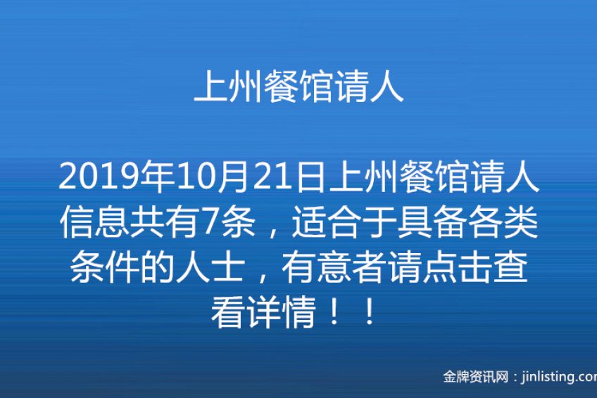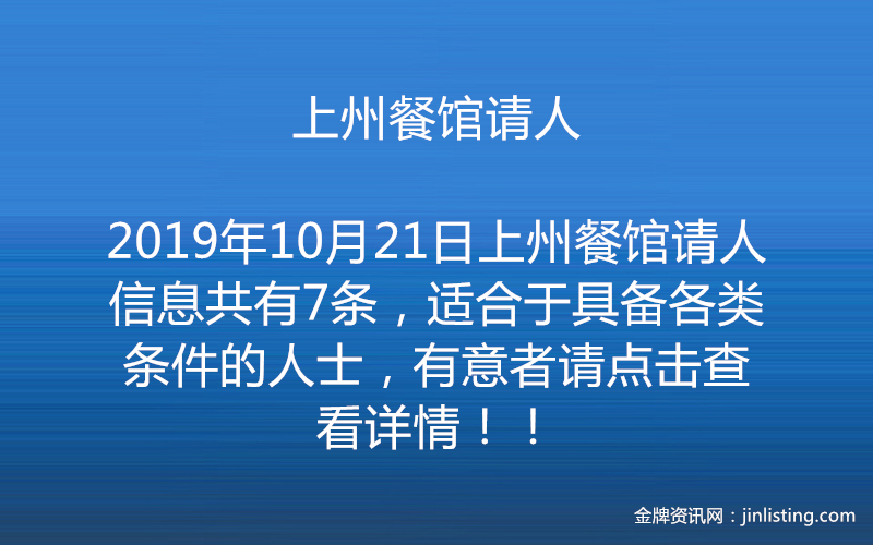 上州餐馆招人招打杂 (209) 495-1103 金城发接送