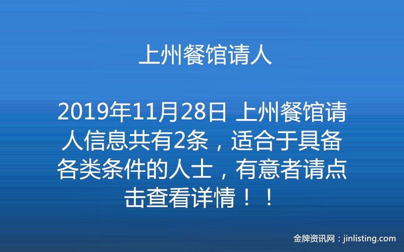 上州餐馆请人