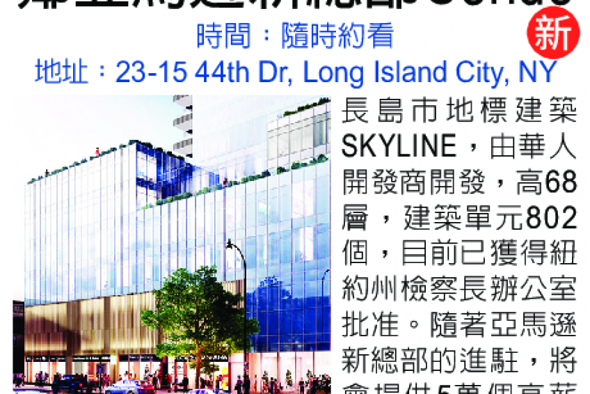 长岛市地標建築SKYLINE,由華人開發商開發,將成爲Queens 最高建築,高度68層,建築單元802個,目前已經獲得紐約州檢察長辦公室批准。隨着亞馬遜新總部的進駐,將會提供5萬個高薪崗位,本區房地產行情走勢高漲。