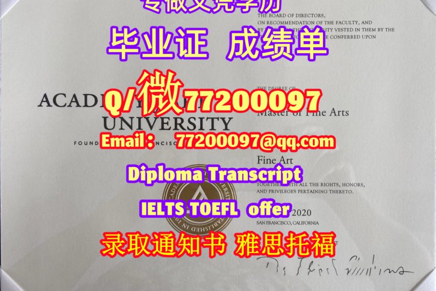专业制作AAU毕业证书买旧金山艺术学院毕业证成绩单Q/微:77200097有AAU文凭证书精仿AAU学位证书能办AAU成绩单制作旧金山艺术学院文凭证书雅思托福Academy of Art University Bachelor/Master Diploma Degree Transcript