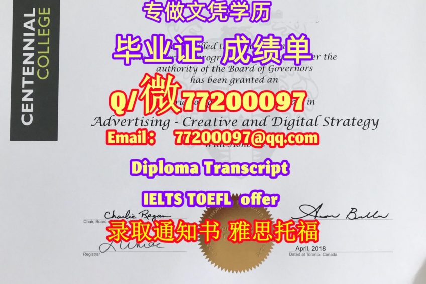 专业制作Centennial毕业证书买百年理工毕业证成绩单Q/微:77200097有Centennial文凭证书精仿Centennial学位证书能办Centennial成绩单制作百年理工学院文凭证书offer雅思托福Centennial College Diploma Degree Transcript
