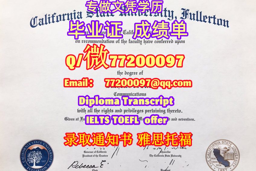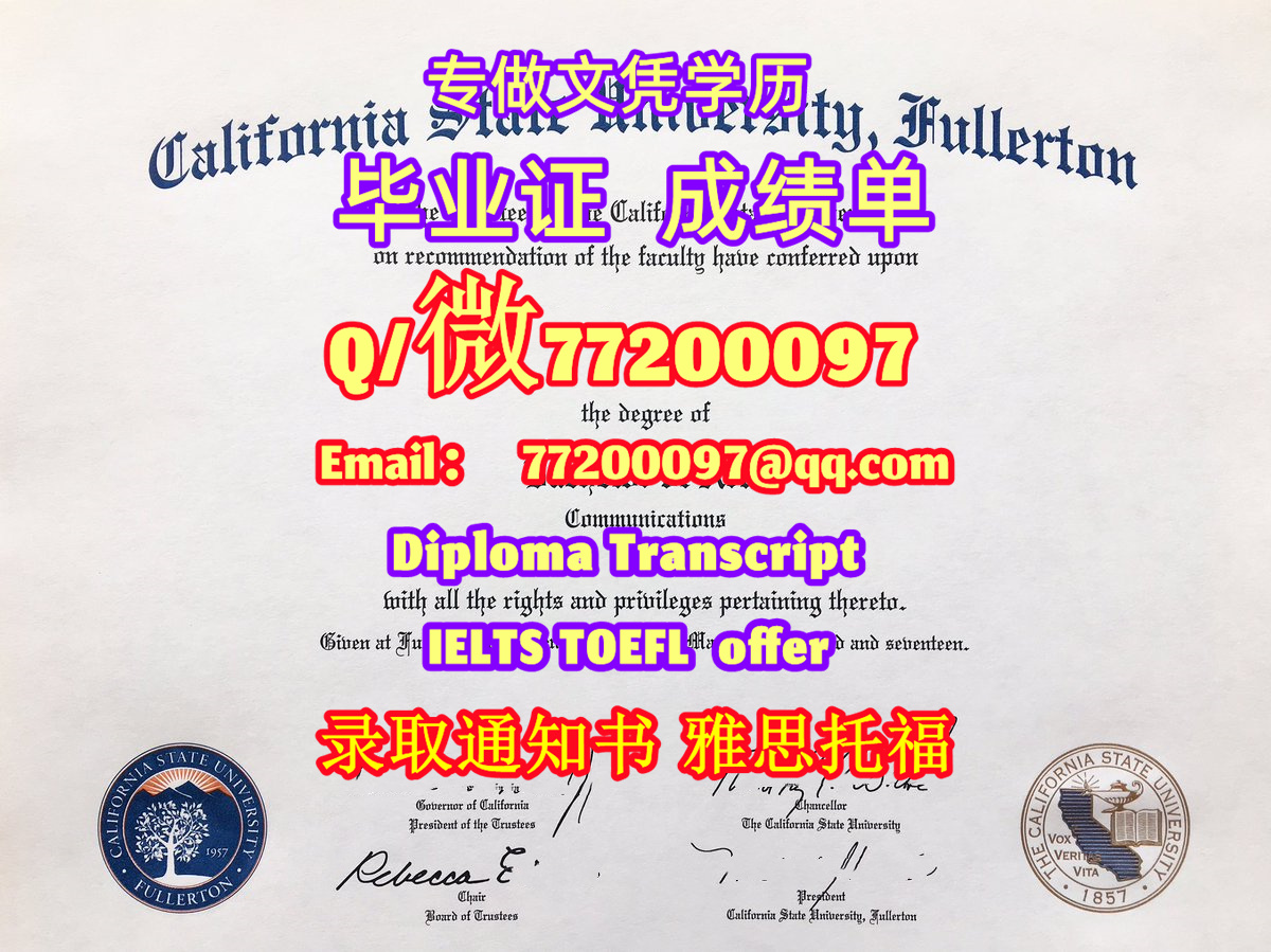 专业制作CSUF毕业证书买CSUF毕业证成绩单Q/微:77200097有加州州立大学富勒顿分校文凭证书精仿Fullerton State学位证书能办Cal State Fullerton成绩单制作加州州立大学富勒顿分校文凭证书雅思托福California State University, Fullerton Bachelor/Master Diploma Degree Transcript