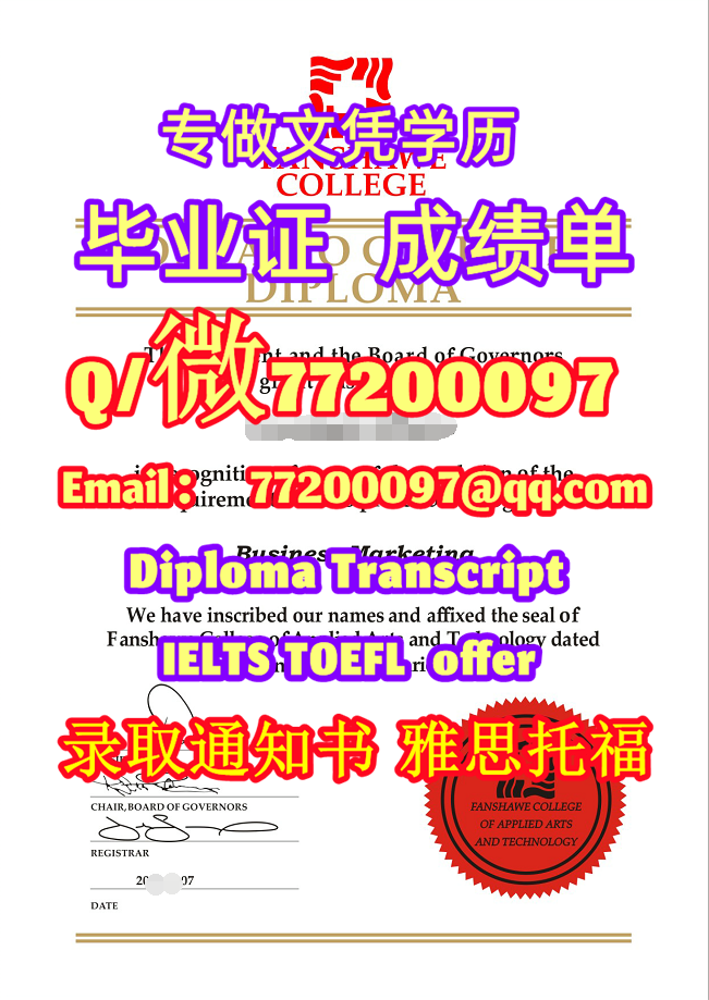专业制作Fanshawe毕业证书买范莎学院毕业证成绩单Q/微:77200097有Fanshawe文凭证书精仿Fanshawe学位证书能办Fanshawe成绩单制作范莎学院文凭证书offer雅思托福Fanshawe college Diploma Degree Transcript