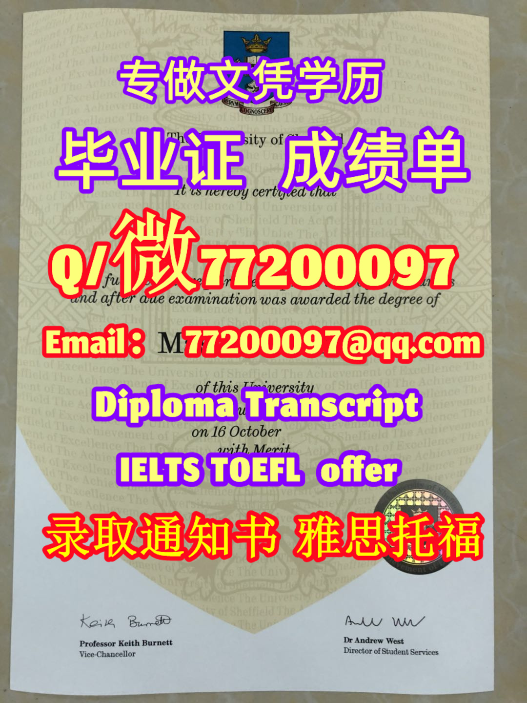 专业制作heffield毕业证书买谢菲尔德大学毕业证成绩单Q/微:77200097有Sheffield文凭证书精仿Sheffield学位证书能办Sheffield成绩单制作谢菲尔德大学文凭证书雅思托福The University of Sheffield Diploma Degree Transcript