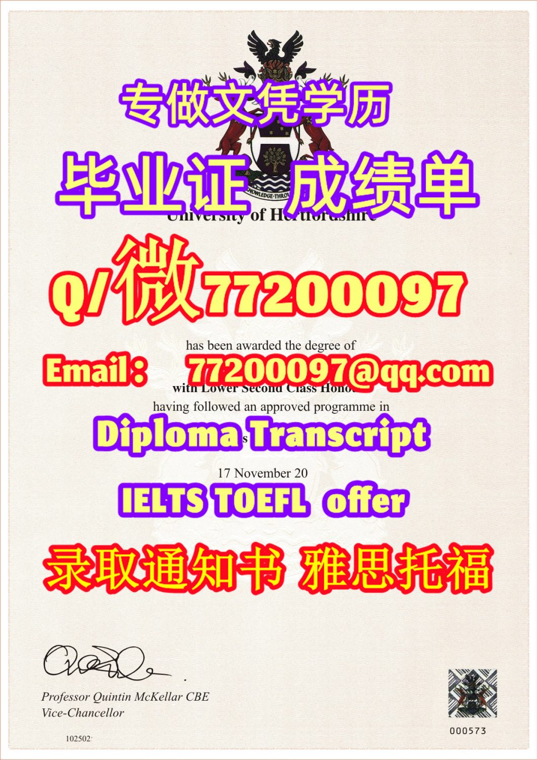 专业制作Herts毕业证书买赫特福德大学毕业证成绩单Q/微:77200097有Herts文凭证书精仿Herts学位证书能办Herts成绩单制作赫特福德大学文凭证书雅思托福University of Hertfordshire Diploma Degree Transcript