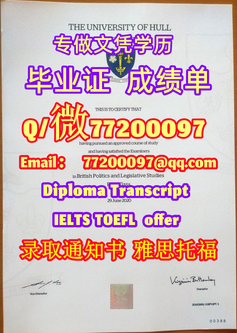 专业制作Hull毕业证书买赫尔大学毕业证成绩单Q/微:77200097有Hull文凭证书精仿Hull学位证书能办Hull成绩单制作赫尔大学文凭证书雅思托福The University of Hull Diploma Degree Transcript