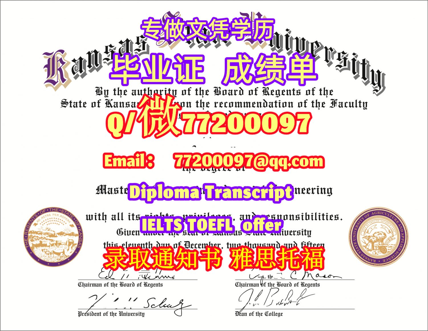 专业制作KSU毕业证书买堪萨斯州立大学毕业证成绩单Q/微:77200097有KSU文凭证书精仿KSU学位证书能办KSU成绩单制作堪萨斯州立大学文凭证书雅思托福Kansas State University Bachelor/Master Diploma Degree Transcript