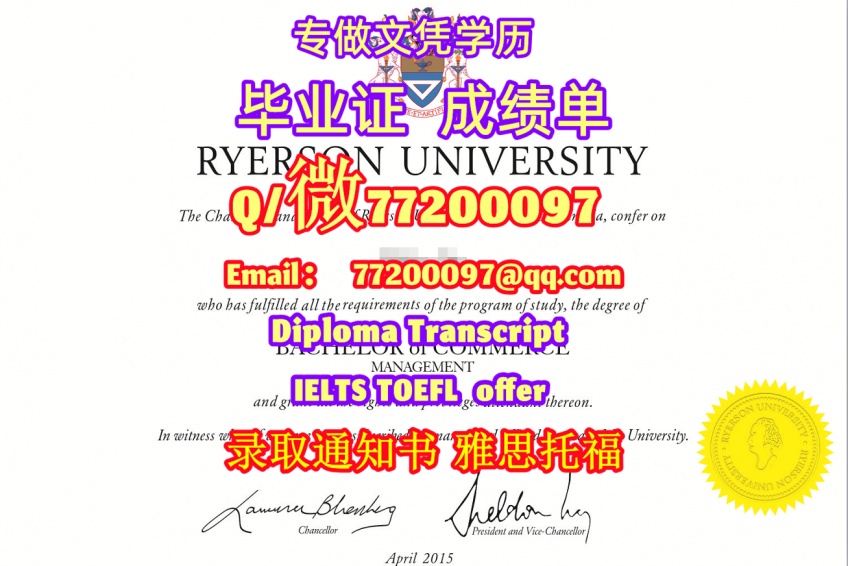专业制作Ryerso毕业证书买瑞尔森大学毕业证成绩单Q/微:77200097有Ryerso文凭证书精仿Ryerso学位证书能办Ryerso成绩单制作瑞尔森大学文凭证书offer雅思托福Ryerson University Diploma Degree Transcript