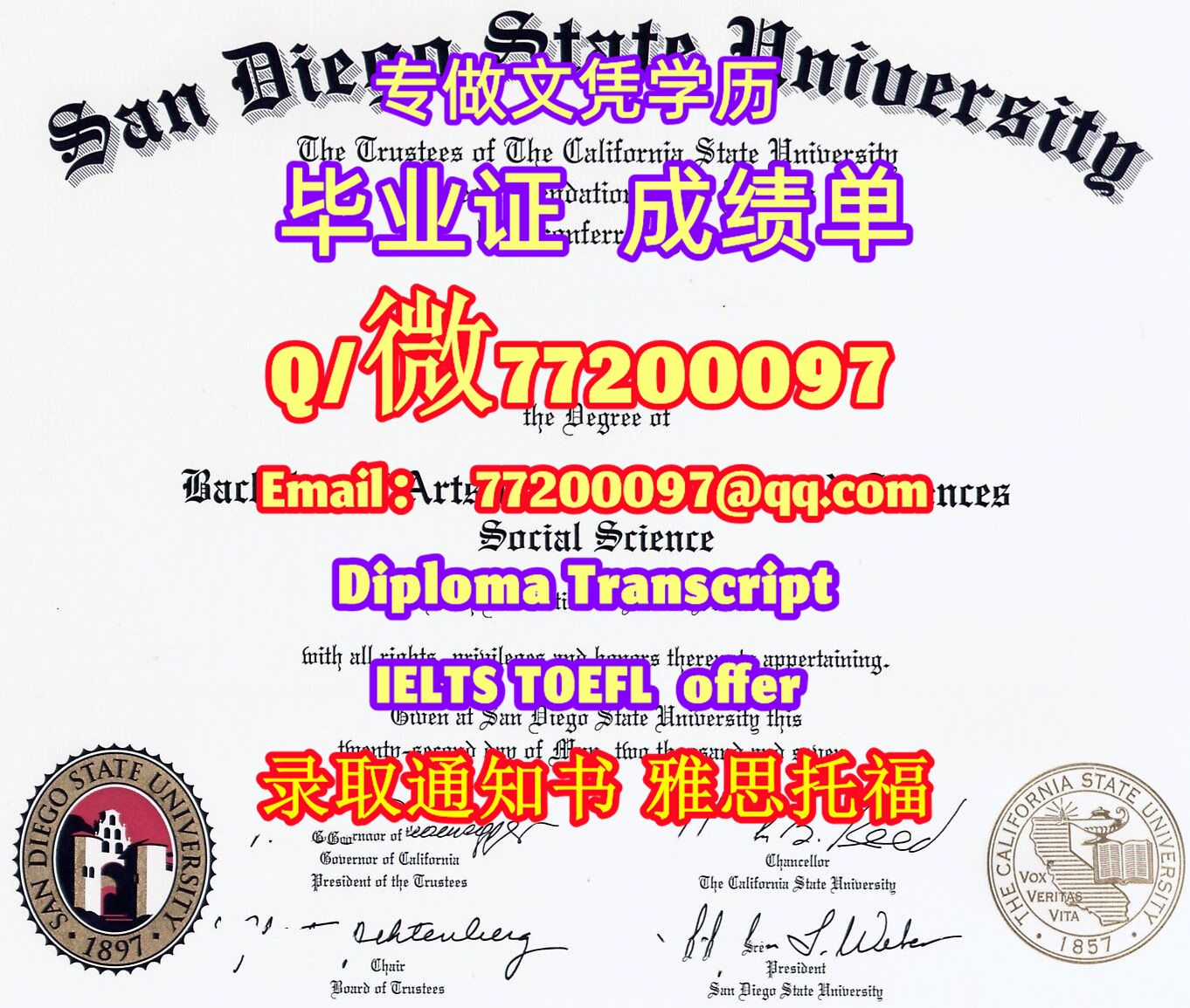 专业制作SD State毕业证书买圣地亚哥州立大学毕业证成绩单Q/微:77200097有SDSU文凭证书精仿SDSU学位证书能办SDSU成绩单制作圣地亚哥州立大学文凭证书雅思托福San Diego State University Bachelor/Master Diploma Degree Transcript